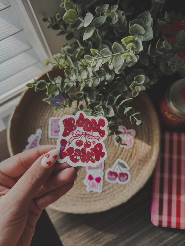 2.5” stickies. waterproof but hand wash preferred